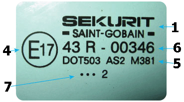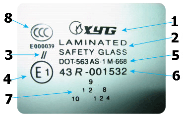 Примеры маркировки автомобильного стекла:
